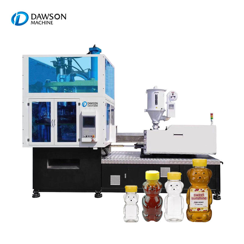 Αυτή η μηχανή έχει τρεις σταθμούς, τον προσχηματισμό εγχύσεων, το φύσηγμα & το τέντωμα και την απελευθέρωση προϊόντων. Η πρώτη ύλη προέρχεται από τη χοάνη στη βίδα εγχύσεων να εγχύσει τον προσχηματισμό το πιάτο περιστρέφεται τους προσχηματισμούς για να φυσήξει/τεντώνει το σταθμό χτυπήματος με τους θερμότητα, χωρίς οποιαδήποτε θέρμανση εκ νέου για το φύσηγμα, κατόπιν το προϊόν θα περιστραφεί για να απελευθερώσει το σταθμό και να μειωθεί κάτω, είναι πλήρως αυτόματα τρόπος εργασίας περιστροφής κύκλων, καμία ανάγκη να αγοραστεί ο προσχηματισμός μπουκαλιών, κανένα απόβλητο, ο υψηλός βαθμός της αυτοματοποίησης, που τελειώνουν - προϊόντα ομαλά και όμορφα.